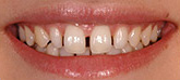 主訴:前歯の差し歯が一本だけ色が浮いている。他の前歯も詰め物がつぎはぎになっているので、この機会にきれいにしたい。